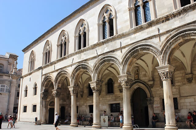 Nawet w arkadzie znajduje się napis, który ostrzegał kupców przed oszustwami. Pałac Sponza to jeden z niewielu miejskich zabytków architektury renesansu, które nie ucierpiały w wyniku niszczycielskiego trzęsienia ziemi w 1667 roku.