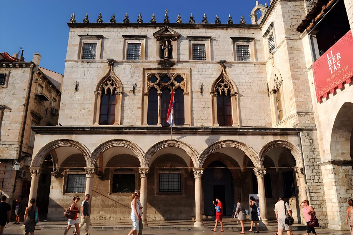 Książęcy pałac znajduje się na głównym placu Starego Miasta — historycznej dzielnicy Dubrownika. Oprócz tego, że pałac pełnił funkcję rezydencji wybranego księcia Republiki Dubrownickiej, mieściła się w nim sala posiedzeń władz miejskich, cele więzienne, sala sądowa, magazyn broni, a nawet prochownia.