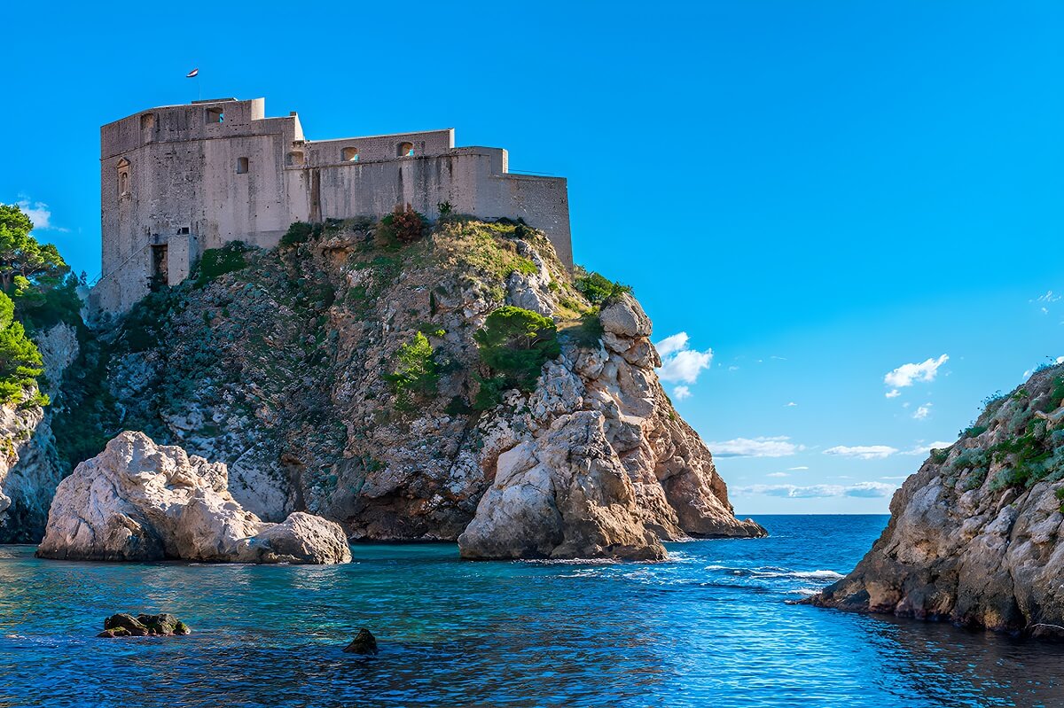Położony na wysokiej skale z widokiem na Morze Adriatyckie, fort Lovrijenac został zbudowany jako oddzielne umocnienie obronne, aby odeprzeć wrogie ataki zarówno od lądu, jak i morza.
