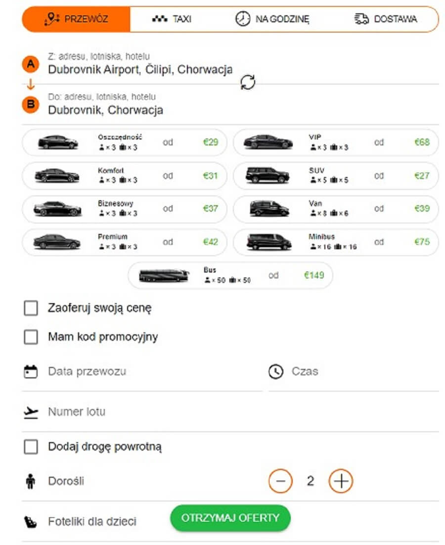 Cena transferu z lotniska do Dubrownika jest mniej więcej taka sama jak przejażdżka taksówką w tym samym kierunku i zaczyna się od 29 euro (klasa auta «Oszczędność»).