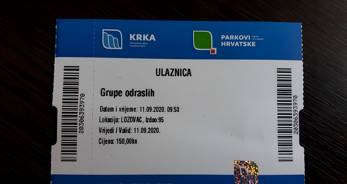 Przy wejściu do parku kupiliśmy bilety wstępu. W tym czasie było to 150 kun za osobę (w 2025 r. — 40 euro). Cena na początku września nie została jeszcze obniżona. Poza sezonem (od października) bilet wstępu jest prawie dwa razy tańszy.