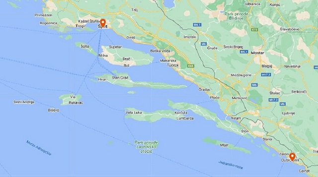 Ta trasa promowa łączy port promowy w Splicie z portem promowym w Dubrowniku.