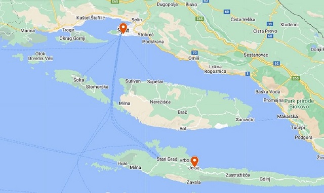 Ta trasa promowa łączy port promowy w Splicie z portem promowym w Jelsa (wyspa Hvar).