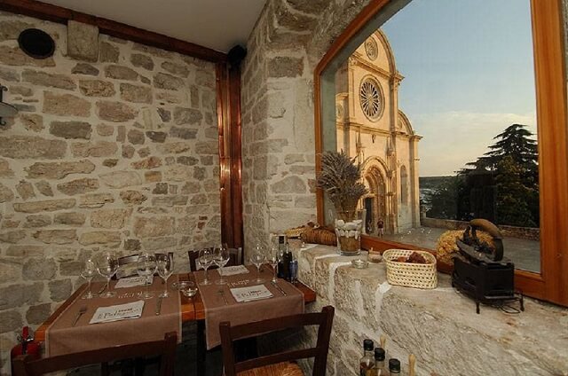 Restauracja wyróżniona gwiazdką Michelin. Znajduje się tuż obok głównej katedry Szybenika (kościół św. Jakuba). Zarezerwowaliśmy stolik z wyprzedzeniem. I słusznie, bo jak się okazało, nierealne jest samo wejście do tej restauracji wieczorem.