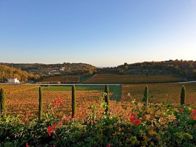 Wspaniały widok, który goście otrzymują, podczas degustacji wina w winnicy Kabola (na Istrii)
