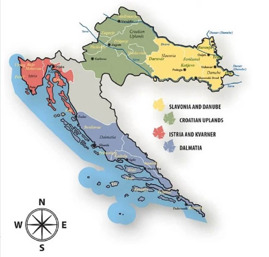 Winiarstwo w Chorwacji umownie dzieli się na dwie główne typy — kontynentalną i przybrzeżną (z wyspami). Ale, od niedawna, znawcy wina i sommelierzy wprowadzili nową klasyfikację i podzielili chorwackie winiarstwo na cztery regiony winiarskie: