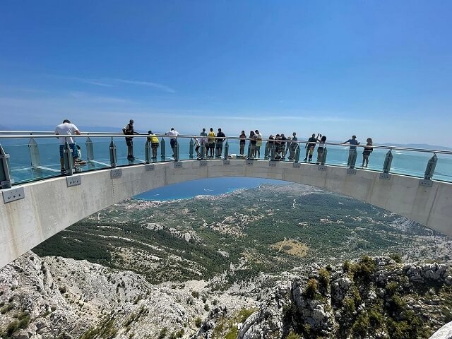 4. Wśród atrakcji przyrodniczych dostępnych w ramach jednodniowych wycieczek warto odwiedzić Park Biokovo i jego unikalny Skywalk, szklany taras widokowy zawieszony nad klifem. Widok stamtąd po prostu zapiera dech w piersiach. Z Makarskiej do Parku Biokovo można wybrać się na kilka ciekawych jednodniowych wycieczek, więc każdy znajdzie coś dla siebie.