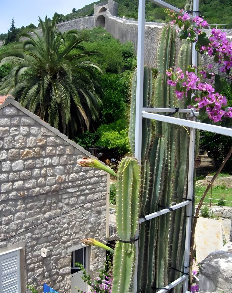 W upale weszliśmy na mur, gdzie zrobiłem zamieszczone powyżej zdjęcia.Ale to co uderzyło mnie najbardziej, nie mur, a kaktus (a dokładniej jego wysokość), wyhodowany i pielęgnowany przez troskliwych mieszkańców miasteczka. O jego wysokości można sądzić po pierwszym zdjęciu z muru, dokładnie na środku, blisko wzniesienia schodów. Tam znajdują się także różowe kwiatki jakiegoś drzewka. A oto jak kaktus wygląda z bliska.