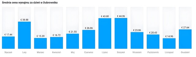 Szczytowe ceny za wynajem samochodów w Dubrowniku przypada na lipiec i sierpień, w tych miesiącach średnia cena za wynajem samochodu na jeden dzień może wynosić do 40 euro za dzień. W ostatnich latach także luty stał się szczytowym miesiącem, ponieważ Dubrownik staje się popularnym miastem na święta Nowego Roku.