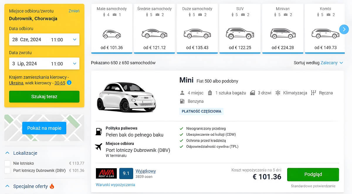 Ten artykuł jest napisany na podstawie naszych osobistych doświadczeń i obejmuje kluczowe aspekty wyboru i wynajmu samochodu w Dubrowniku: porady dotyczące gdzie wynająć samochód, sposoby na zaoszczędzenie pieniędzy, środki bezpieczeństwa, ceny itp.