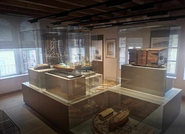 Jest tu wiele ciekawych eksponatów, opowiadających historię Korczuli, jako głównego portu: mapy morskie, resztki statków, modele żaglówek i wiele innych.